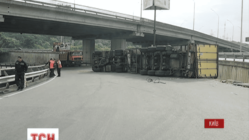 На Південному мосту в Києві перекинулася фура