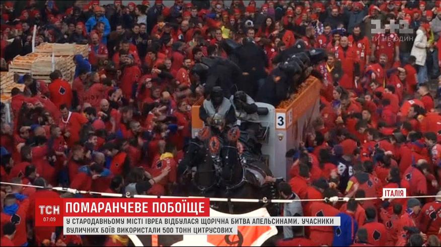 Фестиваль у містечку Івреа веде своїм корінням ще у Середньовіччя, тож і вдягнені деякі учасники відповідно – у лицарські обладунки. Цитрусовий бій проходить щороку і за легендою уособлює боротьбу за волю і повстання проти тиранії. Взяти участь у вуличних боях апельсинами приїздять тисячі туристів.