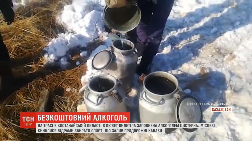 На трасі в Костанайській області водій спиртовоза не впорався з кермуванням. Заповнена алкоголем цистерна відчепилася і злетіла в кювет. Спирт залив придорожні рівчаки і змішався з багнюкою. Але така його якість місцевих чоловіків геть не збентежила. Алкогольна аварія спричинила на трасі справжній фурор.