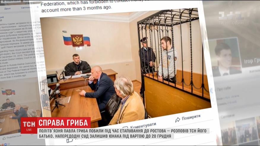 Побили і відібрали особисті речі. Напередодні російський суд постановив - залишити юнака під вартою до 20 грудня. На суді Гриб виглядав пригніченим і виснаженим, адже у хлопця немає ні продуктів, ні медикаментів. Росіяни звинувачують незаконно затриманого українця в організації теракту у Сочі.