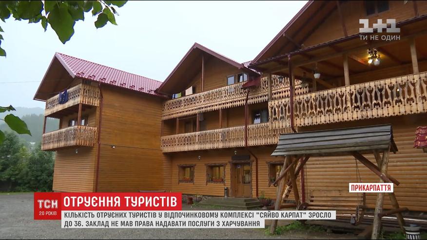 У відпочинковому комплексі "Сяйво Карпат" з отруєнням до лікарів звернулись 36 людей. Це громадяни України, Польщі та Німеччини. За даними власників бази, напередодні гості влаштували майстер-клас із випічки. Власноруч випекли торт. Згодом до лікарні потрапили майже всі, хто його куштував. Держпоживслужба стверджує, що заклад працював без відповідних документів.