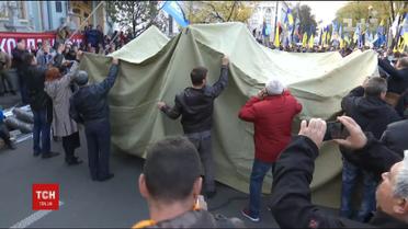 На проїжджій частині під ВРУ за лічені хвилини виросло наметове містечко