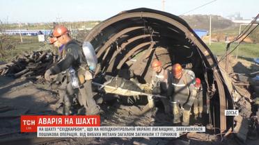 Про це повідомляє самопроголошена влада так званої ЛНР. Серія вибухів на шахті, що у селищі Юріївка, сталася у четвер. За попередніми даними, здетонувало на глибині 150 метрів через витік метану. Троє гірників встигли вибратися неушкодженими з-під завалів. Допомогти у пошуковій операції нібито запросили російських рятувальників з Ростовської області, тіла вони діставали лише за добу після трагедії.