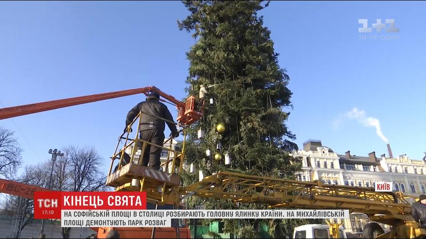 На Софійській площі розбирають головну ялинку і демонтують святкові містечка