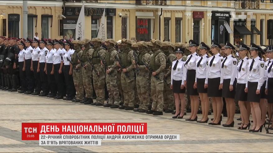 День національної поліції відзначають правоохоронці. Урочистості проходили на Софійській площі. Детективи, патрульні, слідчі - представлені були всі підрозділи. Нагороду від Президента сьогодні отримав молодий правоохоронець, що врятував від пожежі 5 дітей.