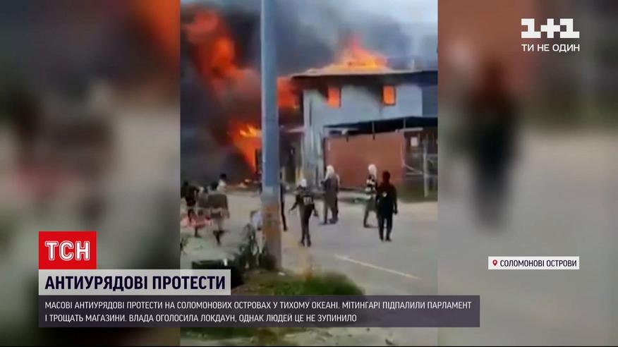 Масові антиурядові протести на Соломонових островах - це у Тихому океані неподалік Австралії. Мітингарі підпалили парламент і трощать урядові будівлі та магазини. Поліція намагається протистояти натовпу і застосовує сльозогінний газ. А влада оголосила повний локдаун на півтори доби. Втім, протести це не зупинило. Люди незадоволені рівнем свого життя.