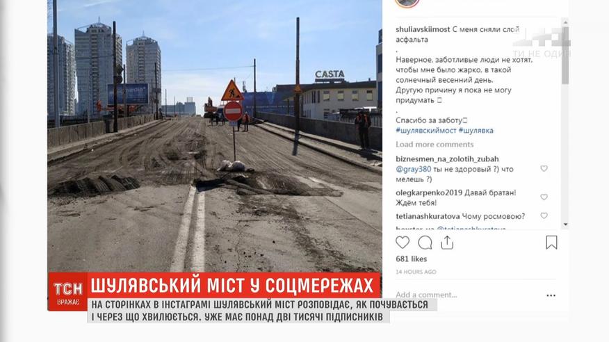 На сторінках Instagram Шулявський міст "розповідає" про своє самопочуття та хвилювання