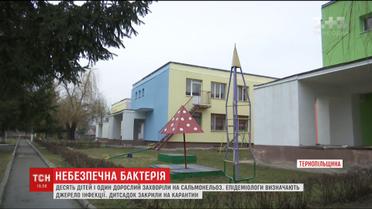 На Тернопільщині десятеро дітей захворіли на сальмонельоз у дитсадку. Чотирьох з них довелося госпіталізувати, нині вони вдома. Також захворів і працівник дитсадка. Від сьогодні у приміщенні проводять дезінфекцію. Заклад на карантині. Поки що точну кількість недужих санепідеміологи назвати не можуть.