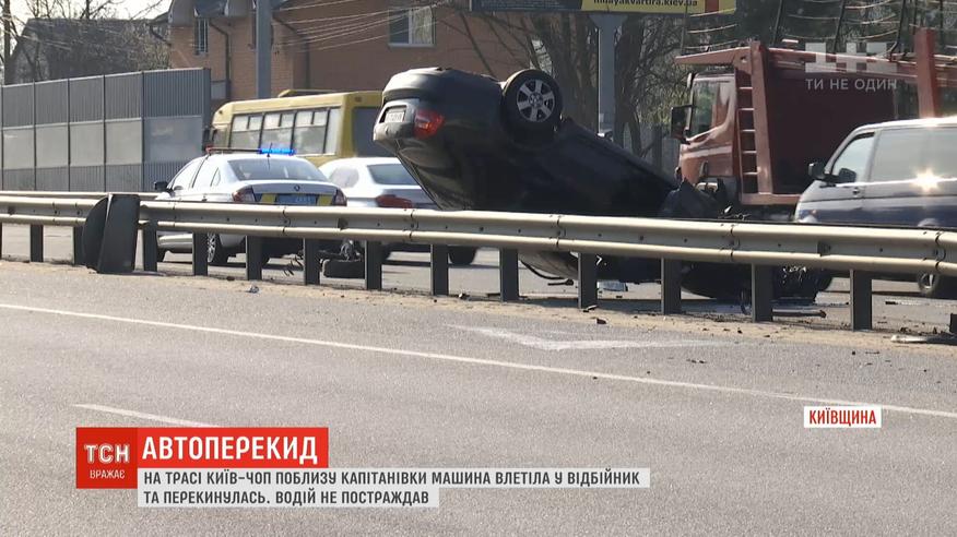 На трасі Київ-Чоп машина влетіла у відбійник та перекинулась