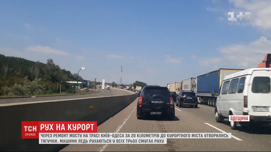 Кілометрові корки та тягучки на трасі "Київ-Одеса". За 20 кілометрів до курортного міста машини стоять у заторі у всіх трьох смугах руху. А все тому, що там ремонтують дамбу на Хаджибейському лимані, і усі машини пропускають по черзі. Детальніше – у сюжеті.