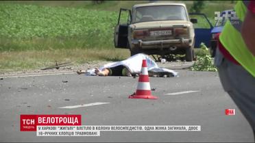 За попередніми даними, водій "Жигулів " вискочив на зустріч ку, де їхали велосипедисти. Кажуть, пішов на обгін і на повному ходу влетів у них. Від удару всі четверо розлетілися на кілька метрів. 32-річна жінка від численних травм загинула на місці. Двох 16-річних хлопців шпиталізували з травмами різного ступеня тяжкості.