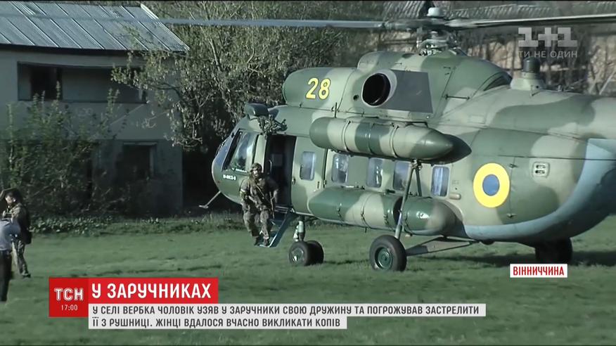 Стрілянина, гелікоптер та спецпризначенці на Вінниччині. У селі Вербка чоловік взяв у заручники свою дружину і погрожував застрелити її з рушниці. Жінка встигла зателефонувати в поліцію. А коли приїхали копи, озброєний чоловік відкрив вогонь по них. Правоохоронці поранили нападника в ногу. Заручницю вивели з будинку неушкодженою.