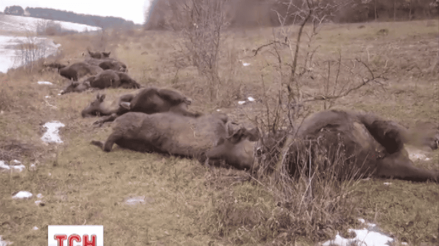 Стадо цих тварин невідомо чому зайшло на кригу. Місцеві лісники переконані, зубри самі туди б ніколи не пішли - їх загнали. Хто і навіщо зараз з'ясовує слідство.
