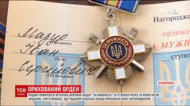 У шухляді сільради новий голова знайшов нагороду, яку ветеранові Іванові Мазуру мали вручити ще далекого 1999-го року. За життя дідусь так і не дізнався про відзнаку, а міг би тішитись відзнакою ще 5 років. А ще три роки по смерті ветерана могла б отримувати гроші за орден його вдова.