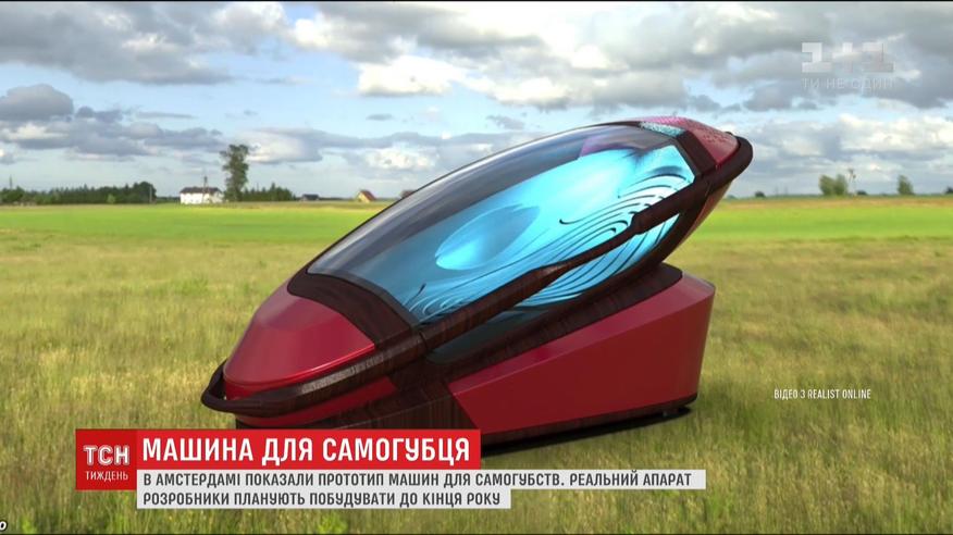 Знизу - резервуар з азотом, зверху - місце для самогубця. Один натиск кнопки - і людина відчуває запаморочення в голові, втрачає свідомість і помирає, - каже один із розробників Філіп Нічке - австралієць, який 20 років відстоював право людей на евтаназію. Реальну машину планують сконструювати до кінця року.