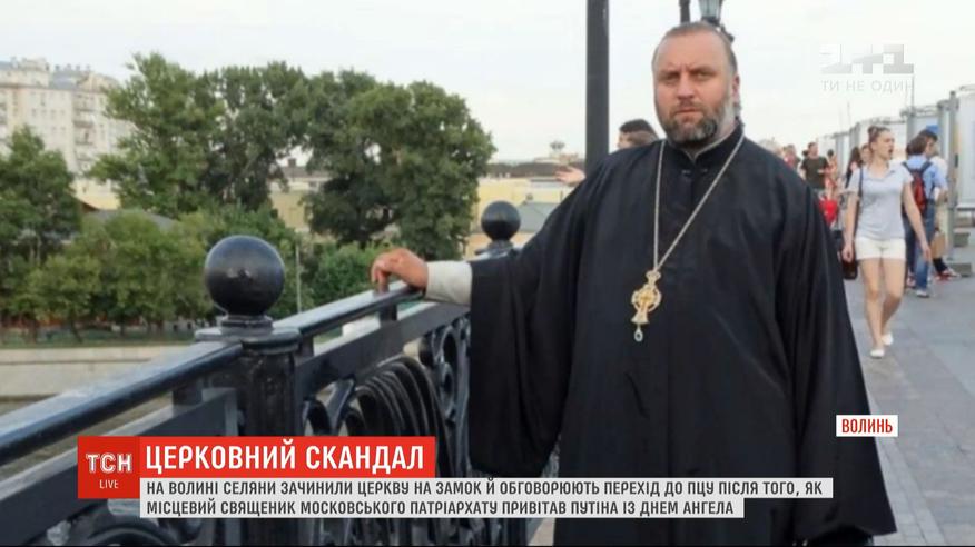 Побажав здоров'я Путіну - геть із храму. На Волині, у селі Галинівка, селяни закрили на замок церкву після того, як дізналися, що їхній священник привітав з днем ангела президента Росії. Пост із побажаннями панотець розмістив у соцмережі. Потім швиденько його видалив - але було пізно.