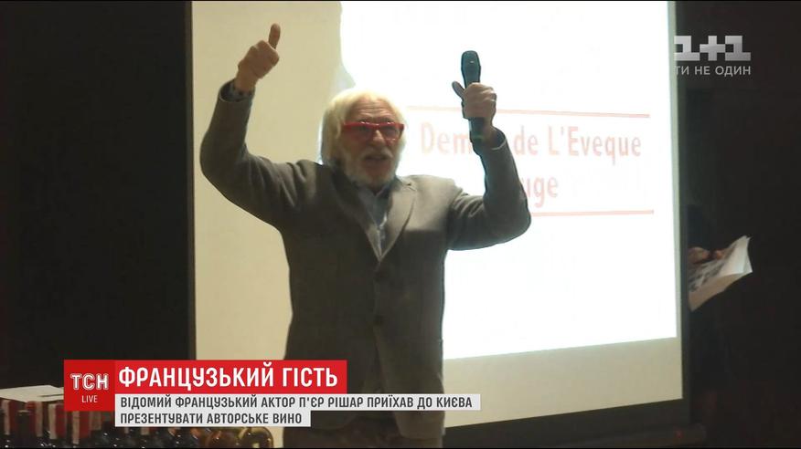 Надвечір ТСН заскочила француза в елітному ресторані, і з'ясувалося, що він приїхав до української столиці презентувати авторське вино. 82-річний актор вже понад три десятиліття займається виноробством та має виноградники. Чим його приваблює Україна, Рішар поділився під час спілкування з гостями київського закладу.