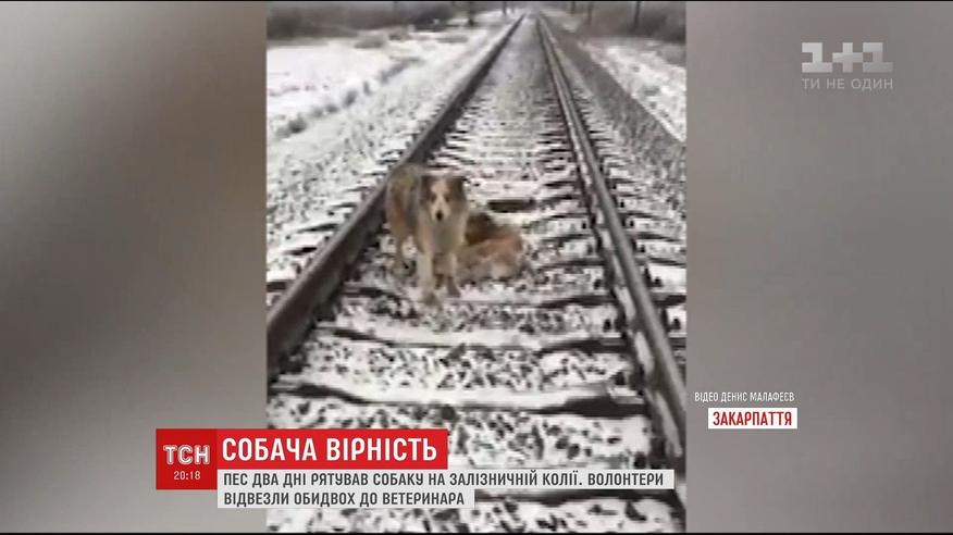 На Закарпатті дві доби поспіль пес не відходив від пораненої собаки, яка потрапила під потяг
