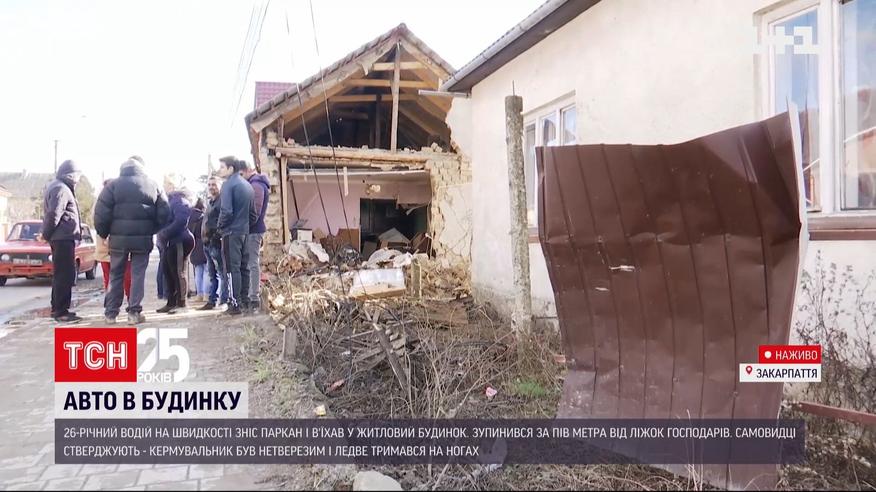 У Виногрудовому, легковик на шаленій швидкості проламав стіну й опинився в кімнаті. У цей час у будинку була родина з двома дітьми, машина зупинилася за пів метра від їхніх ліжок. У якому стані господарі будинку і чому сталась аварія – дивіться у ТСН.