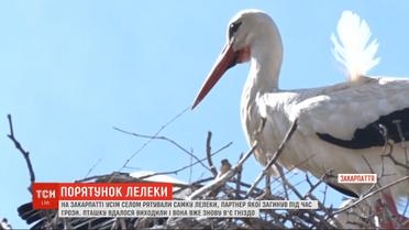 На Закарпатті усім селом рятували самку лелеки, партнер якої загинув під час грози