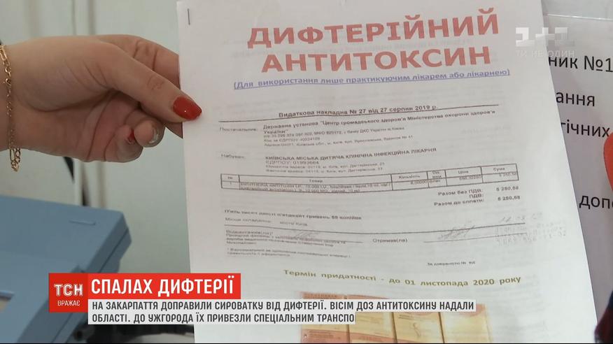 Вісім доз антитоксину надали сусідні області - Львівська, Чернівецька та Івано-Франківська. До Ужгорода, де кілька днів було недостатньо вакцини, її привезли спеціальним транспортом. Запас - 8 доз - там вкололи лише чотирьом пацієнтам. Нагадаємо, тиждень тому дифтерію виявили в одного студента, згодом ще у двох.