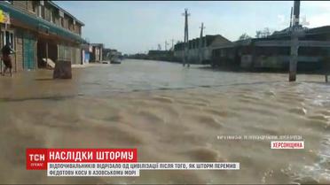 Селище Кирилівка в Запорізькій області залило під час шторму, а відпочивальників на острові Бірючий узагалі відрізало від цивілізації. Федотову косу перемило водою, і дорога що вела на неї, перетворилася на бурхливу річку.
