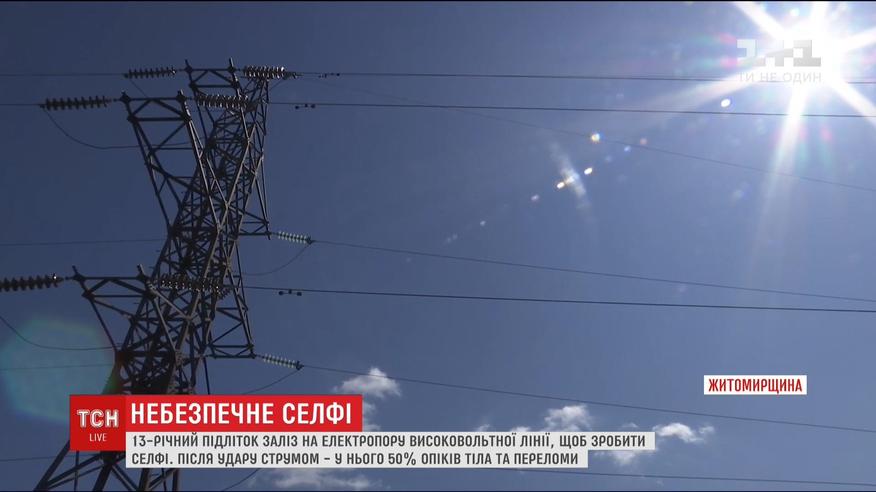 Підліток, хизуючись перед дівчиною, заліз на електроопору високовольтної лінії, щоб зробити селфі. Хлопця вдарило струмом, і він полетів донизу. Усе відбувалося на очах однокласників. У Юрка обпечена половина тіла, кілька переламів і травма ока. У школі, де він вчиться - збирають гроші на лікування.