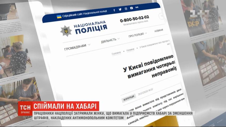 Спіймали на хабарі. Нацполіція затримала жінку, яка вимагала 4 мільйони гривень за вплив на службовців Антимонопольного комітету. Ім'я цієї людини не розголошують. В АМКУ вже заявили: це не їхня співробітниця. За версією слідства, жінка вимагала хабарі у двох підприємств. За це обіцяла посприяти зменшенню штрафів. Їх на підприємства наклав Антимонопольний комітет за порушення законодавства. Жінці загрожує до восьми років за гратами із конфіскацією майна.