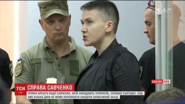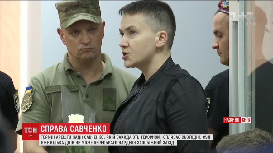 Четверту добу четвертий суддя розглядає продовження арешту для нардепа Надії Савченко. Сторона захисту вкотре висунула недовіру прокурору. Опівночі спливає термін арешту Надії Савченко. А суд досі не вирішив - чи подовжувати запобіжний захід нардепу, яку звинувачують у тероризмі з метою державного перевороту.
