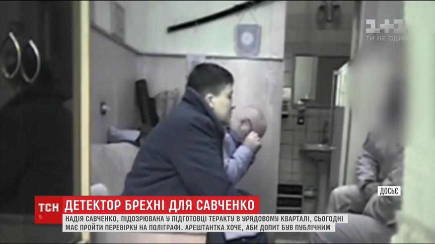 Підозрювана у підготовці теракту в урядовому кварталі, сьогодні має пройти перевірку на детекторі брехні. Надія воліє щонайменше відео-трансляції, якщо журналістів не пустять на саму процедуру. Минулого четверга із Надією Савченко вже зустрічалися експерти, аби за допомогою детектора перевірити: чи справді вона разом із поплічниками планувала підірвати Верховну Раду, чи лише грала на камеру. Перший етап Савченко пройшла успішно.