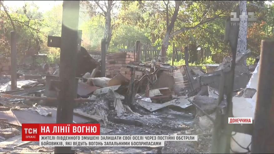 Поки військові розміновують територію довкола села Південне, люди тікають з зони бойових дій. Налякані постійними обстрілами жителі Піденного, яке нещодавно звільнили наші воїни, бояться далі лишатись у селі. Бойовики навмисне цілять по будинках запальними боєприпасами й палять усе довкола, сіючи паніку і страх.