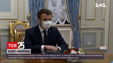 "Російські війська біля українських кордонів створюють тиск на міжнародну спільноту, найближчим часом слід створити нову систему безпеки в Європі, Франція та Німеччина залишаються посередниками у врегулюванні питання Донбасу." Про це президент Франції Еммануель Макрон заявив після переговорів із українським президентом Володимиром Зеленським. До Києва він приїхав напередодні, після переговорів з очільником Кремля. Із Москви французький лідер привіз ідеї компромісу для деескалації на українському кордоні і врегулювання ситуації дипломатичним шляхом.