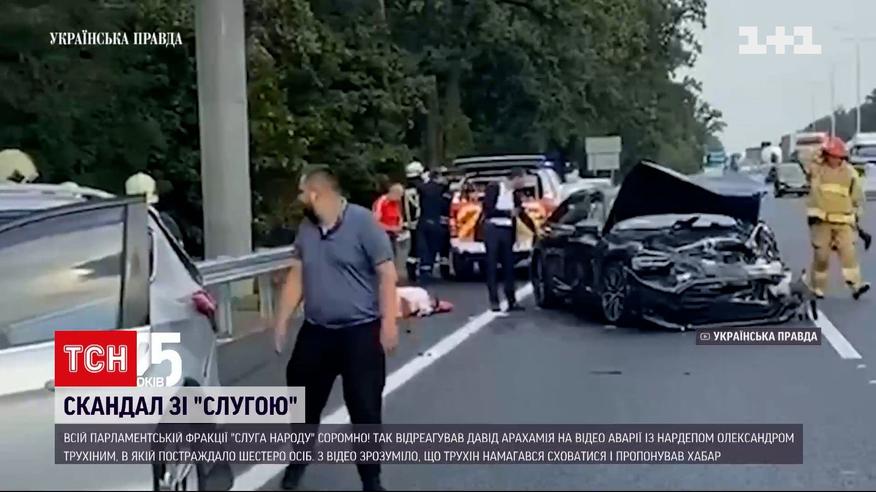 Нардеп Олександр Трухін знову герой соцмереж. За пів року після аварії за його участі, в якій травмувалися шестеро людей - двоє з яких діти - видання "Українська правда" оприлюднило розслідування ДТП. На відео з нагрудної камери поліцейського видно, що одразу після зіткнення Трухін перелізає через огорожу та йде до лісу, а на прохання правоохоронців зупинитись просить його відпустити, за що обіцяє поговорити з міністром внутрішніх справ Денисом Монастирським і згодом віддячити копові. Зокрема натякає про 150 тисяч, які залишилися у сумці в машині.