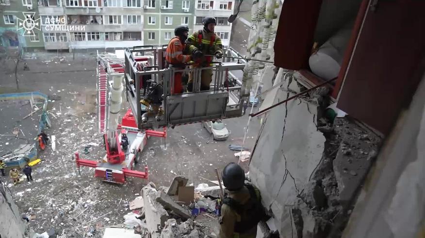 Наслідки атаки на багатоповерхівку в Сумах зняли на відео