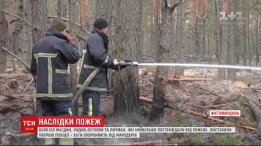 На Житомирщині досі тліють окремі ділянки. Відкритого полум'я немає, але повністю зупинити тління трави поки не вдається. Вогнеборці обкопують і заливають траву водою. На в'їздах до сіл Магдин, Острови, Личман та Рудня - вони найбільше постраждали від вогню - виставили пости поліції. Копи охороняють спорожнілі села від мародерів. Більше про коронавірус в Україні