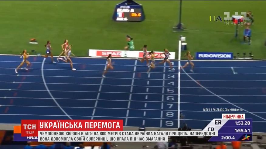 Чемпіонкою Європи з бігу стала українка, яка напередодні допомогла суперниці, котра впала, дійти до фінішу. Наша Наталя Прищепа у Німеччині першою подолала дистанцію на 800 метрів і виборола золото. Рівнянка ще напередодні підкорила Берлін, коли фінішувала у кваліфікаційному забігу, а потім повернулася на дистанцію, щоб допомогти своїй суперниці - бельгійці. Та під час змагання перечепилася і впала, від розпачу заплакала. Українська легкоатлетка допомогла піднятися спортсменці та довела її до фінішу.