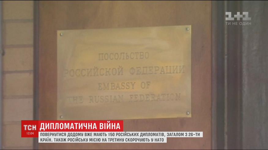 Загалом за тиждень повернутися на батьківщину мають 150 росіян із 26 країн. Також приєднатися до солідарної реакції на отруєння російського шпигуна у Лондоні вирішили й у НАТО. Сімом представникам Росії при Альянсі скасували акредитацію, ще трьом - її не дадуть.