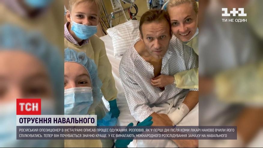 Не міг пригадати найпростіших слів і досі тремтять ноги, як піднімається сходами – Олексій Навальний написав другий пост в Instagram про своє одужання і виклав фото. Розповів, що у перші дні після виходу з коми лікарі наново вчили його спілкуватись, та зараз почувається значно краще. У Європарламенті вимагають запровадити новий пакет санкцій проти Росії через отруєння Навального та закликають до міжнародного розслідування. У ЄС підозрюють, що до замаху на опозиціонера причетна російська влада. У Москві досі заперечують сам факт отруєння Навального. Детальніше – у сюжеті ТСН.