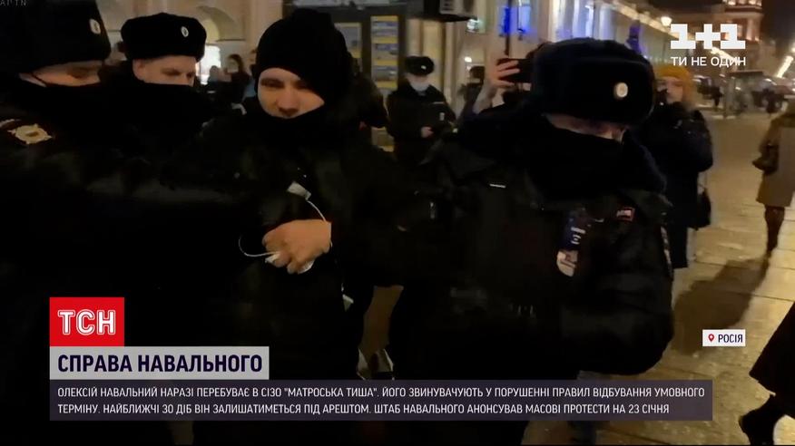 Перебуває у слідчому ізоляторі і лишатиметься під арештом ще 30 діб. Російського опозиціонера Навального тримають у СІЗО "Матроська тиша". Затриманого після прибуття до Москви політика напередодні судили прямо у поліцейському відділку. Нібито за те, що порушив правила відбування умовного терміну. Вже з відділку Навальний закликав росіян виходити на вулиці. Його штаб анонсував масові акції на 23 січня. Одразу після суду над Навальним у Москві та Санкт-Петербурзі на протести вийшли десятки його соратників. Більшість одразу затримали.