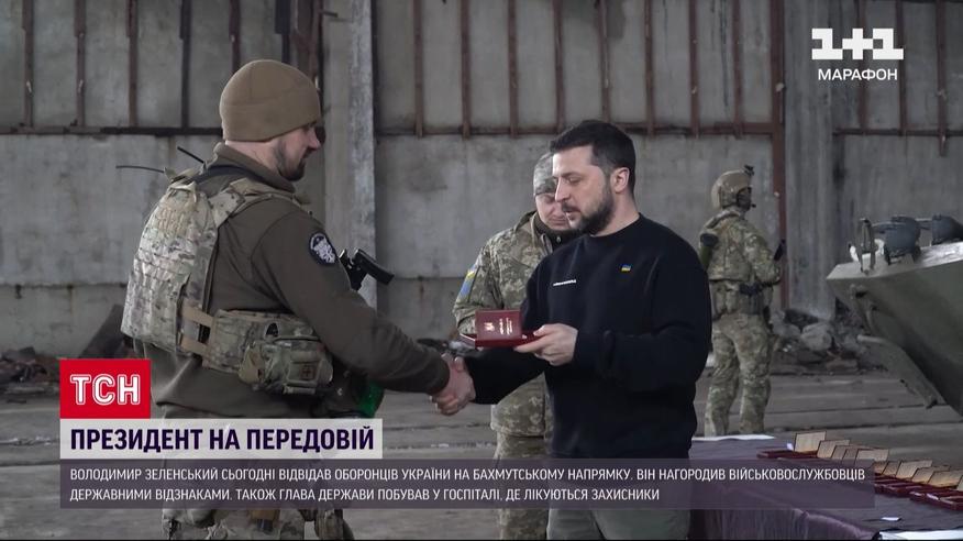 Президент України Володимир Зеленський 22 березня був на передових позиціях на Донеччині. Він зустрівся із оборонцями України на Бахмутському напрямку. А також відвідав госпіталь, де лікуються військовослужбовці. Глава держави подякував усім захисникам і захисницям, які виборюють суверенітет України. До того ж, відзначив роботу медиків, які ставлять на ноги поранених. І лікарів, і воїнів нагородили просто у лікарняних палатах. Зеленський присвоїв оборонцям Бахмута державні відзнаки. Зокрема, звання Героя України отримав капітан Ілля Вергун. Підрозділи під його керівництвом знищили велику кількість ворожої техніки. На передовій президент також заслухав оперативну інформацію про перебіг бойових дій