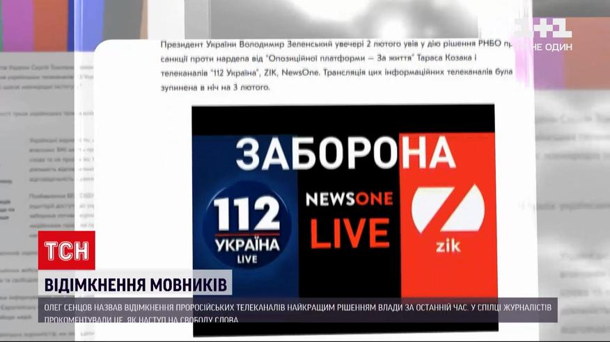Рішення про санкції активно коментують. Відгукнувся український режисер Олег Сенцов, який 5 років провів у російській колонії за сфабрикованими звинуваченнями. Відімкнення 3 телеканалів - він назвав - найкращим рішенням влади за останній час. А от у Спілці журналістів України санкції щодо мовників назвали надзвичайною ситуацією. Та наступом на свободу слова. Мовляв, аудиторію позбавили доступу до відповідних ЗМІ без рішення суду.