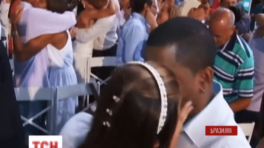 Там одночасно побралися майже дві тисячі бразильських пар. Загалом, участь у святковій церемонії взяли 12 тисяч людей.