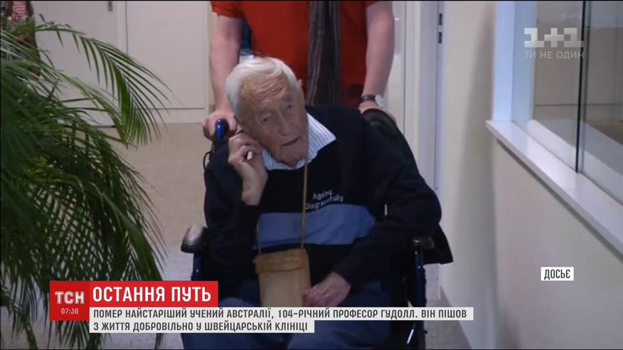104-річний професор Девід Гудолл приїхав до країни по евтаназію. У його рідній Австралії добровільно піти з життя можуть лише смертельно хворі люди. А Гудолл нічим не хворів. 104-річний чоловік скаржився лише, що з віком якість його життя значно погіршилась.