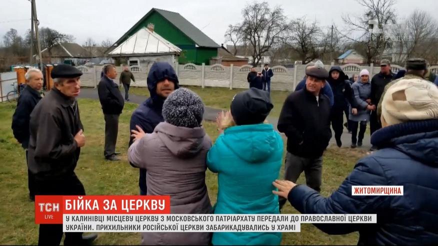 Громада села Калинівка на Житомирщині ухвалила перехід з Московського патріархату до Православної церкви України. І після цього у храм їх не пустили. Прихильники Московського патріархату забарикадувались там. Що відбувається у селі – ТСН дізнавалась.