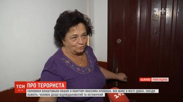 Неговіркий та відлюдькуватий. Так про Максима Кривоша відгукуються сусіди. Чоловік живе в місті Дубно, неподалік Рівного. Сьогодні в його квартирі силовики влаштували обшук. Більше - у прямому включенні.