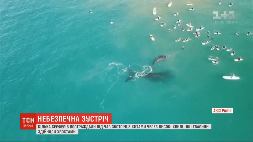 В Австралії кілька серферів постраждали під час зустрічі з морськими гігантами. Двійко китів, мама і дитина, наблизилися до людей у передмісті Сіднея. Серфери збилися докупи і спостерігали за гігантами, а от кити, роздивившись людей, вирішили плисти далі. Під час розвороту хвіст дорослої тварини здійняв хвилі, але серфери на дошках втрималися. А от під час аналогічного інциденту в іншому місці сильні травми отримали двоє людей. За австралійськими правилами, люди мають триматися від китів на безпечній відстані, тож випадок нині розслідують.