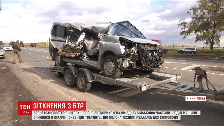 Неподалік Вінниці на дорозі не розминулися бронетранспортер та іномарка, є постраждалі
