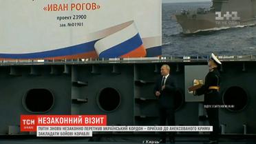 Російський президент знову незаконно перетнув кордон України - Путін приїхав до окупованого Криму закладати бойові кораблі. Глава держави-агресорки відвідав суднобудівельний завод у місті Керч, де зводитимуть десантні кораблі для російського флоту. Це вже третій за рік незаконний візит Путіна до Криму. Міністерство закордонних справ України висловило з цього приводу рішучий протест і засудило також подальшу мілітаризацію півострова, яку проводить Росія. У вересні окупанти готуються проводити масштабні військові навчання, зокрема, й на території Криму. До окупованого півострова з'їдуться тисячі російських військових - у відповідь Міноборони України планує провести власні навчання, до участі в яких запросило й НАТО.