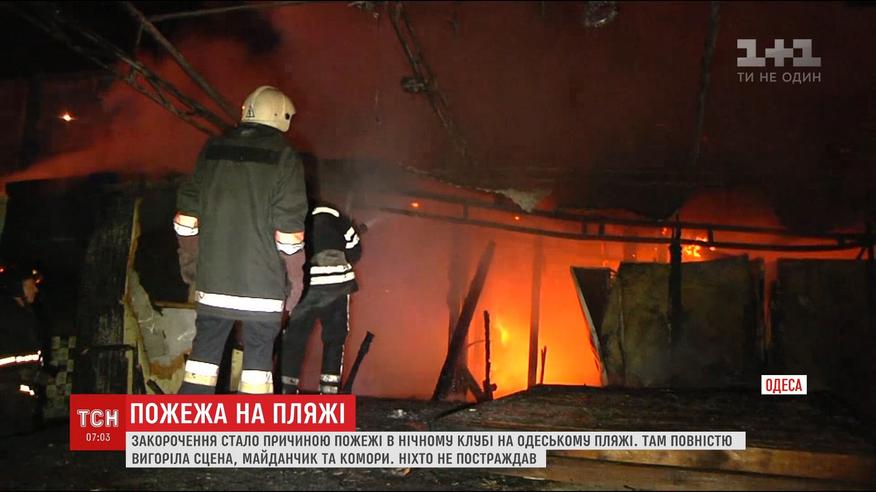 Розважальний заклад на 13-й станції фонтану палав напередодні. Спалахнуло біля сцени, сильний вітер миттю розніс вогонь на дерев’яні шатри. Пожежа охопила практично всю територію клубу. Поки рятувальники пробиралися через запарковані біля пляжу авто, гасити полум’я кинулися працівники клубу разом з відвідувачами. Люди не постраждали. Але в клубі повністю вигоріла сцена, майданчик та підсобне приміщення.