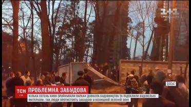 Проти забудови напередодні виступили кілька сотень мешканців спального району столиці Святошино. Вони завалили паркан, підпалили будівельні матеріали та вагончики. Пожежники вогонь загасили швидко. Аби вгамувати підпалювачів, на місце приїхало з десяток патрульних машин.